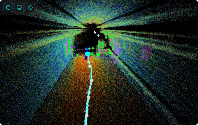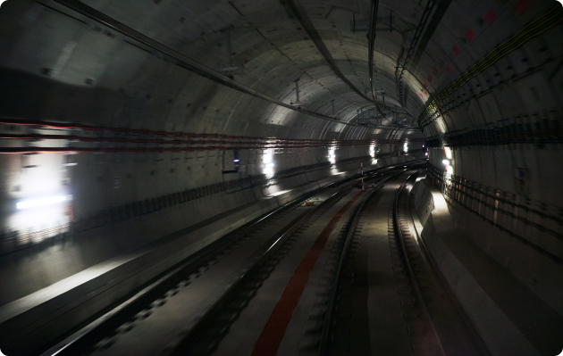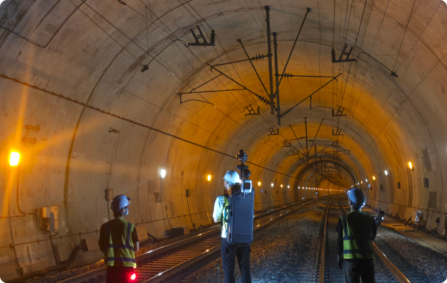 긴 터널 내벽을 연속 스캔하여 균열, 누수 위치 파악